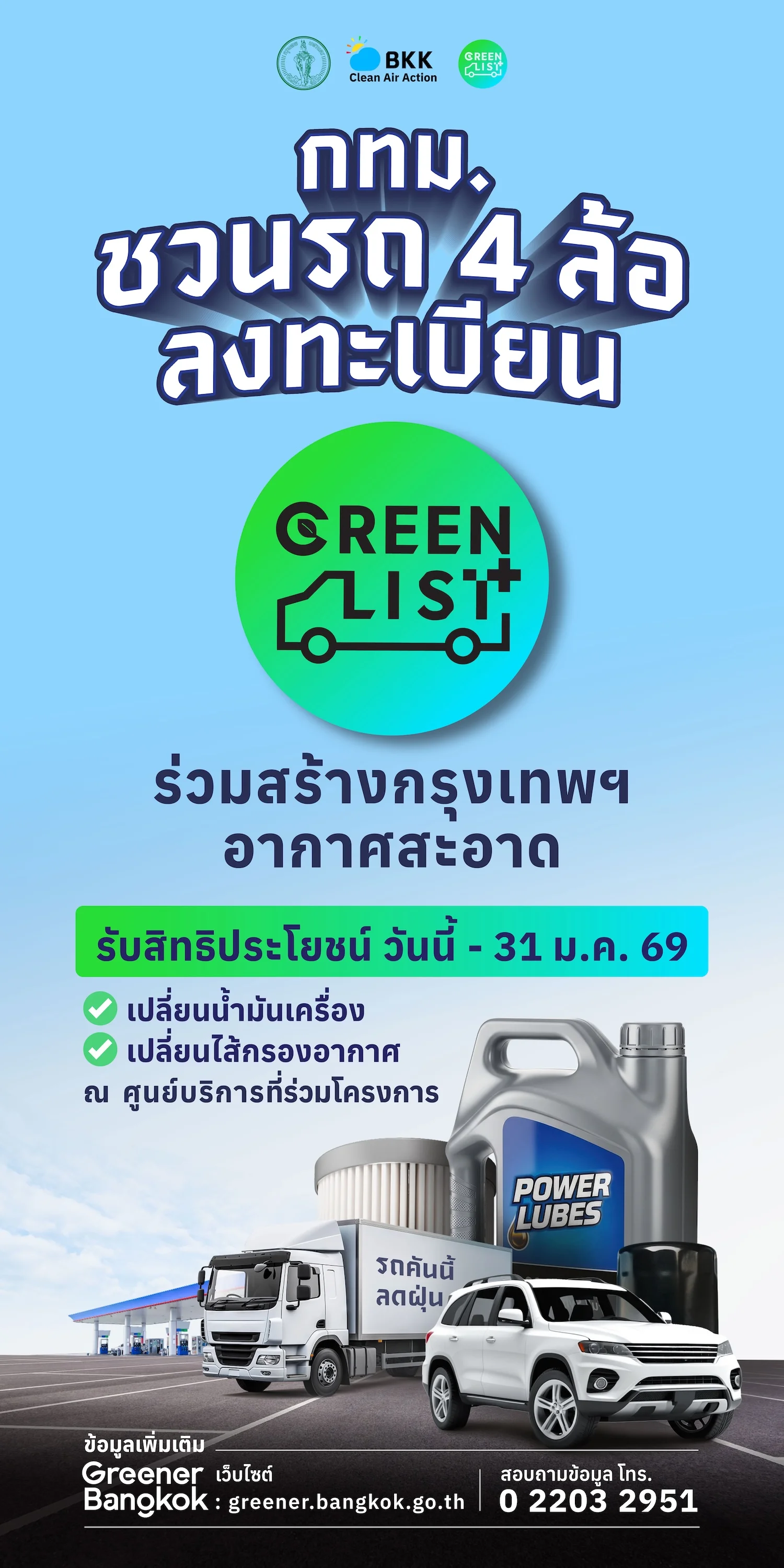 " /> Bangkok, together with the FTI, is moving forward with the “PM2.5 Dust Reduction Car Clinic” project to support oil change and engine inspection services at over 1,463 locations.