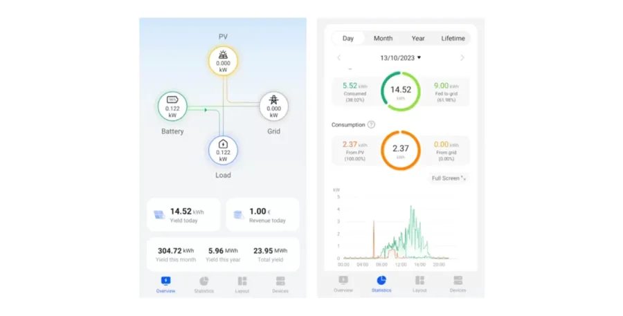 อินเวอร์เตอร์ส่วนใหญ่มาพร้อมกับแอปพลิเคชันเพื่อดูการทำงานและผลการผลิตไฟของระบบโซลาร์ได้เพียงเชื่อมต่ออินเวอร์เตอร์กับ Wi-Fi ของบ้าน หรือในบางกรณีใช้เป็นอุปกรณ์เสริมโดยใส่ซิมอินเทอร์เน็ตในอินเวอร์เตอร์ก็ได้