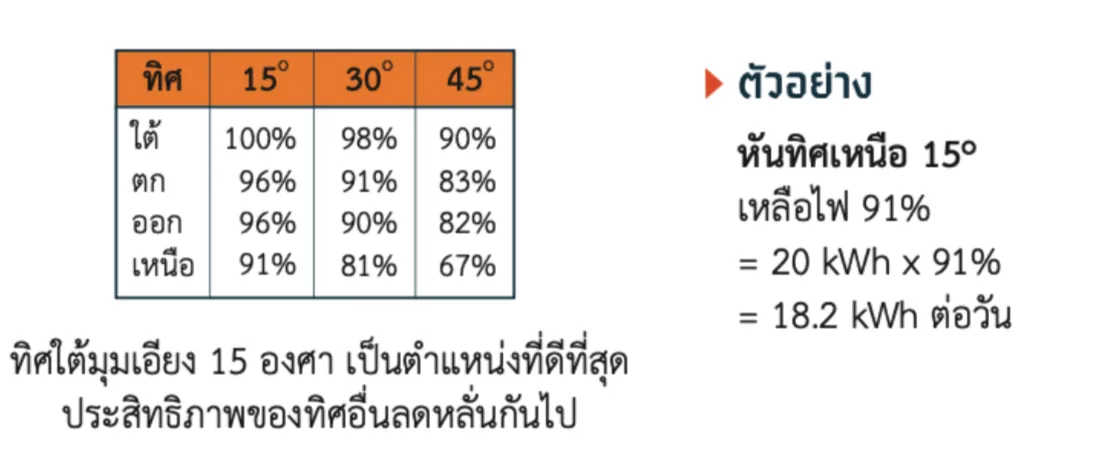 ทิศทางและมุมเอียงของหลังคา
